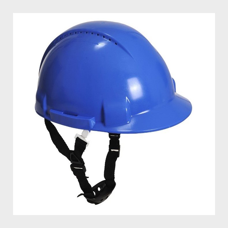 Ventileret hjelm til arbejde i højden. ABS skal og 6 punkts hjelmindsats. Hurtig justering af størrelse. Leveres med sved bånd og 4 punkt hagerem. One-size - justerbar 52-62 cm.